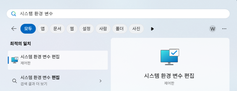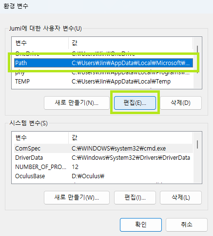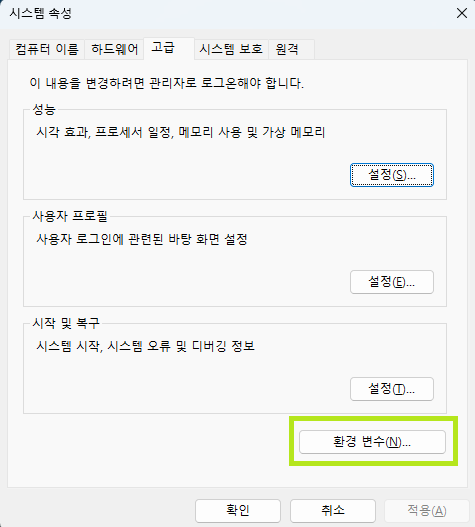 1๋ฒ, 2๋ฒ์ฒ๋ผ ๋ค์ด๊ฐ๊ฑฐ๋, ์์์ฐฝ์ '์์คํ ํ๊ฒฝ ๋ณ์ ํธ์ง'์ ๊ฒ์ํด์ '์์คํ ์์ฑ' ์ฐฝ์ ๋์ด๋ค