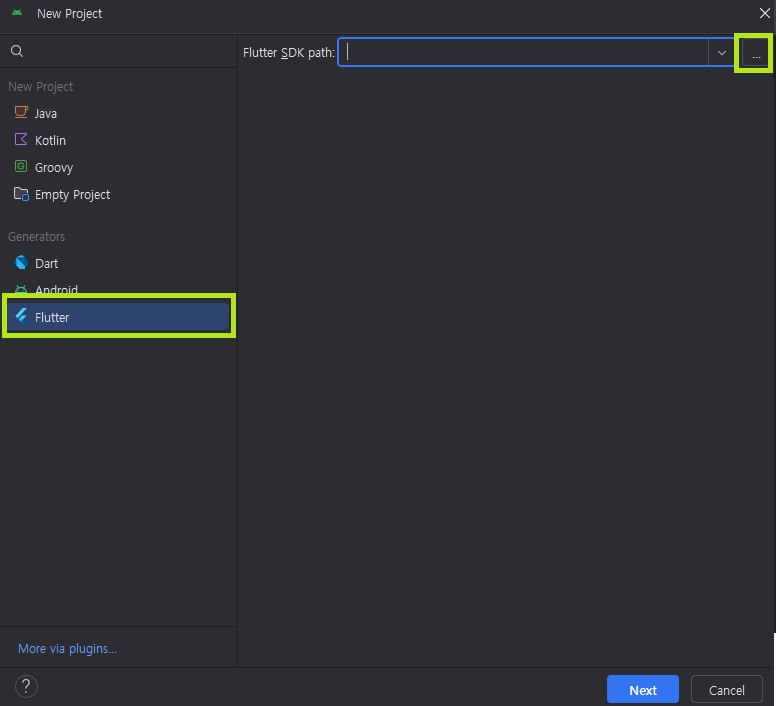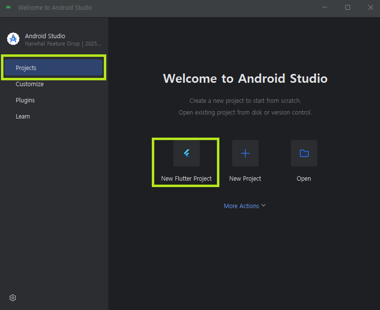 Projects → New Flutter Project