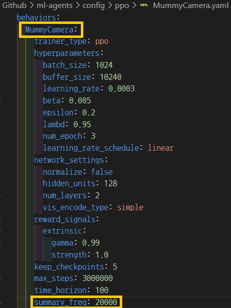 - summary_freq : 2๋ง๋ฒ์ผ๋ก ์กฐ์