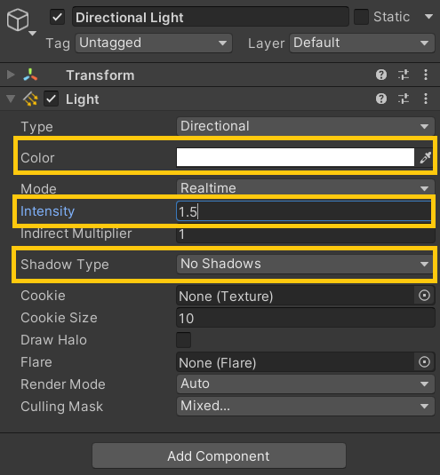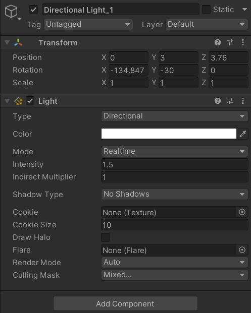 - Directional Light ๋ณต์ฌ ํ ๊ฐ๋ ์กฐ์ ๋ฐ ์ด๋