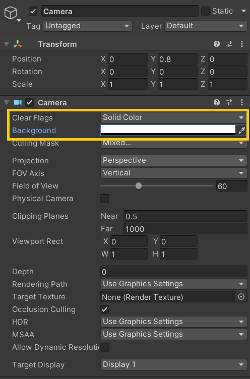 - Clear Flags : Solid Color