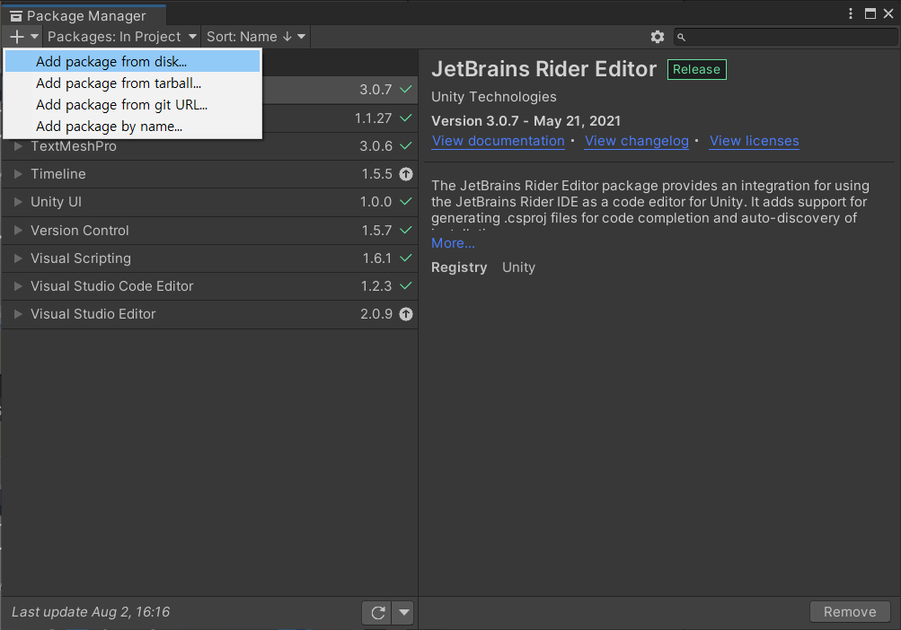 - Add package from disk