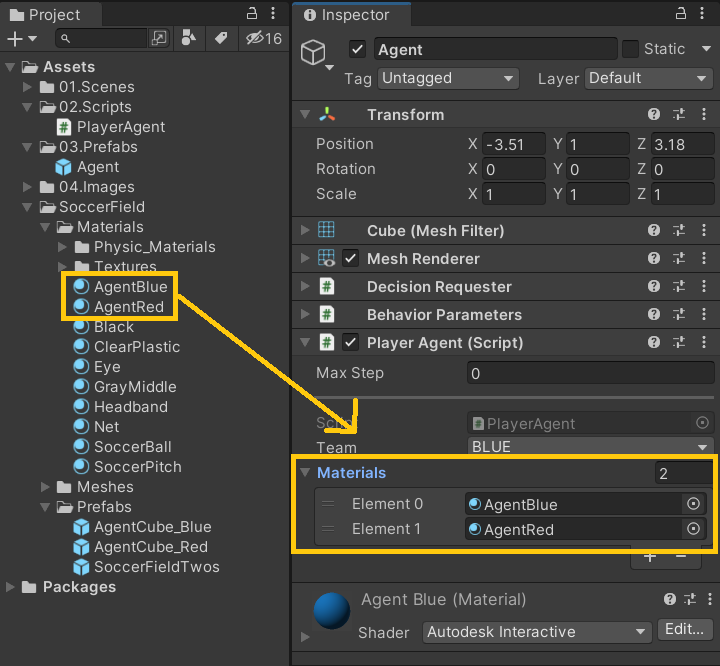 ๐ถ PlayerAgent.cs : agent team, ์์ ์ค์