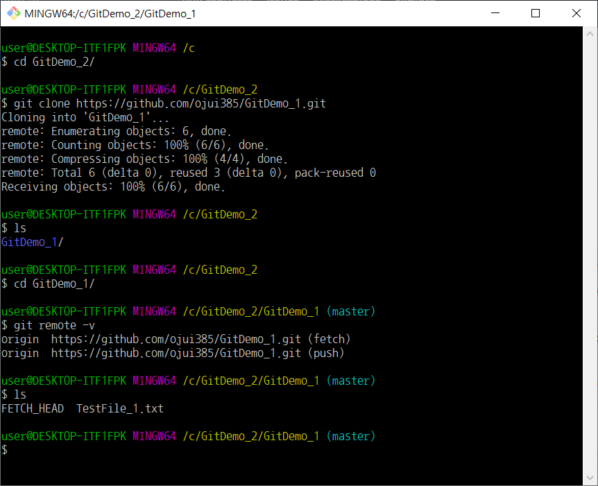 - ํด๋ก ํ ์ ์ฅ์์ ์ด๋ฆ์ผ๋ก ํด๋๊ฐ ์์ฑ๋๊ณ , ๊ทธ ์๋์ ์ ์ฅ์์ ์๋ ํ์ผ๋ค์ด ์์ฑ๋ ๊ฒ์ ํ์ธ