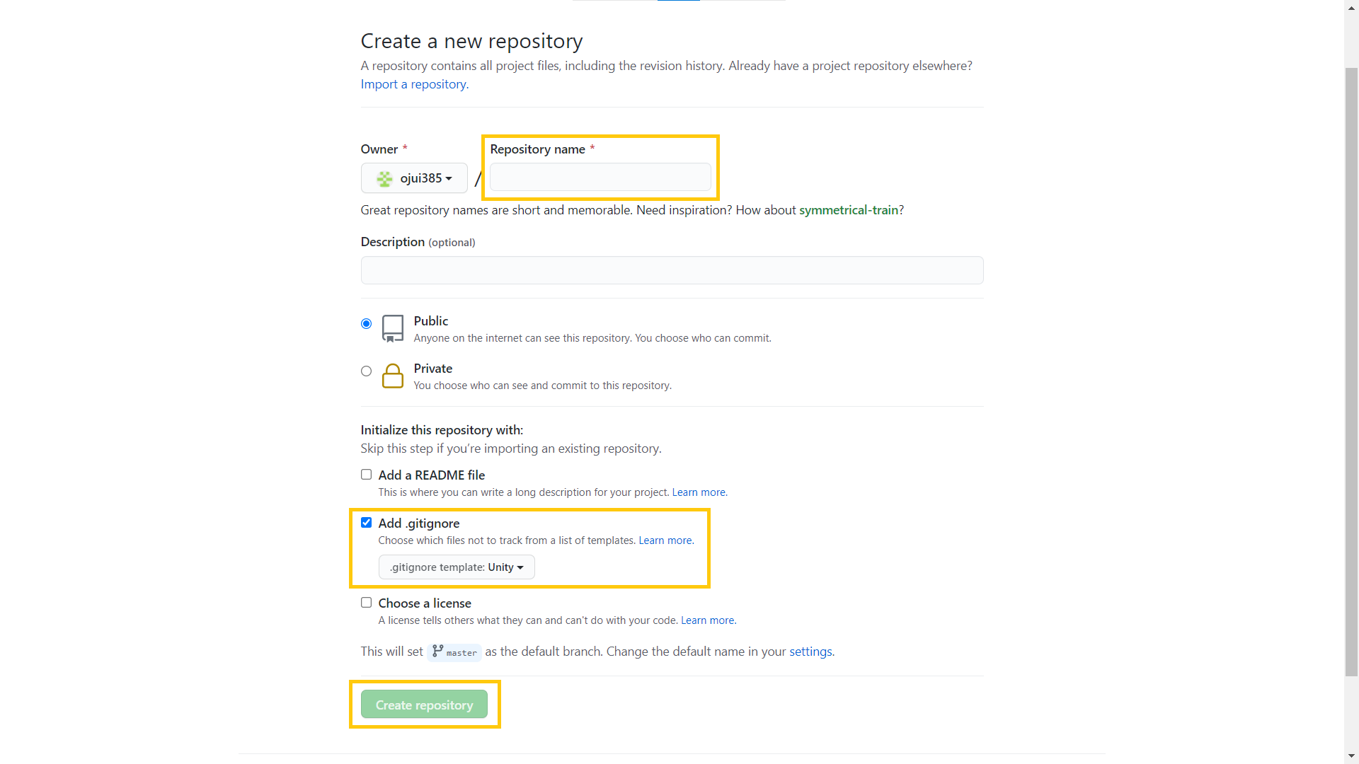 - Add .gitignore > Unity : unity ํ๋ก์ ํธ๋ฅผ ์ฌ๋ฆด๊ฑฐ๋ผ๋ฉด ์ค์