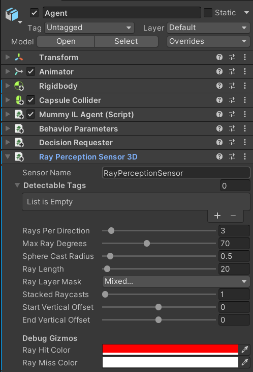 - ์ปดํฌ๋ํธ ์ถ๊ฐ : Ray Perception Sensor 3D