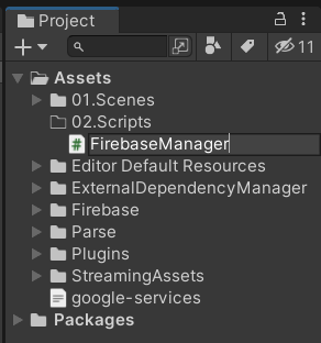 - ์คํฌ๋ฆฝํธ ์์ฑ : FirebaseManager
