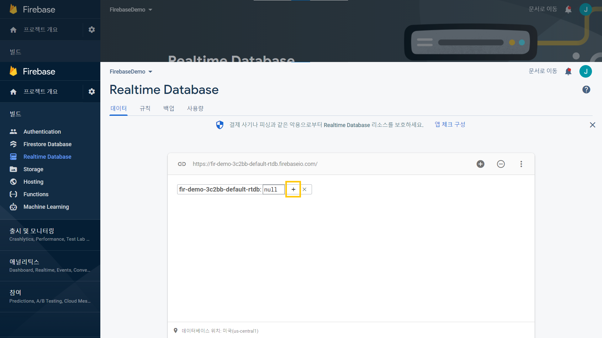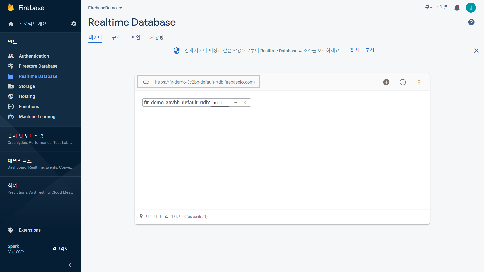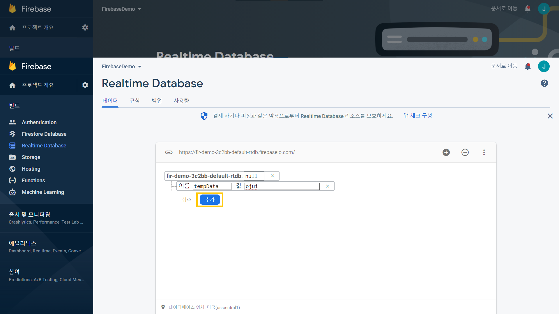 - 6๋ฒ์งธ ์ค์ ,"firebase_url": "https://fir-demo-3c2bb-default-rtdb.firebaseio.com/" ๋ฃ๊ธฐ