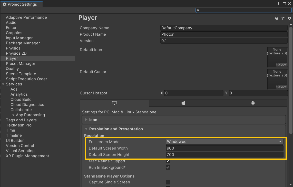 - Default Screen Width, Height : ์ ๋นํ ์กฐ์