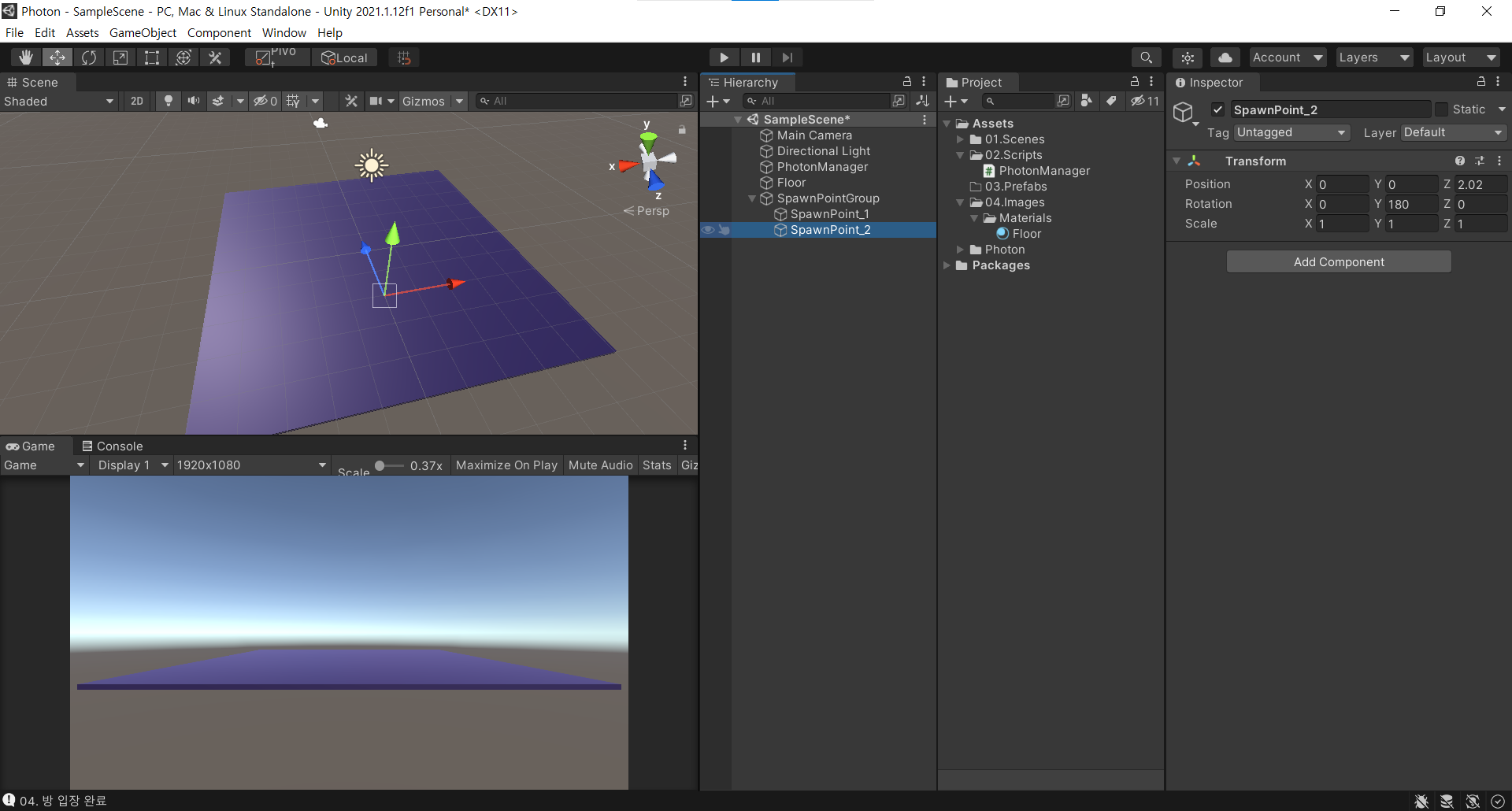 - ํ์์ ๋น๊ฒ์์ค๋ธ์ ํธ ์์ฑ : SpawnPoint_1, SpawnPoint_2