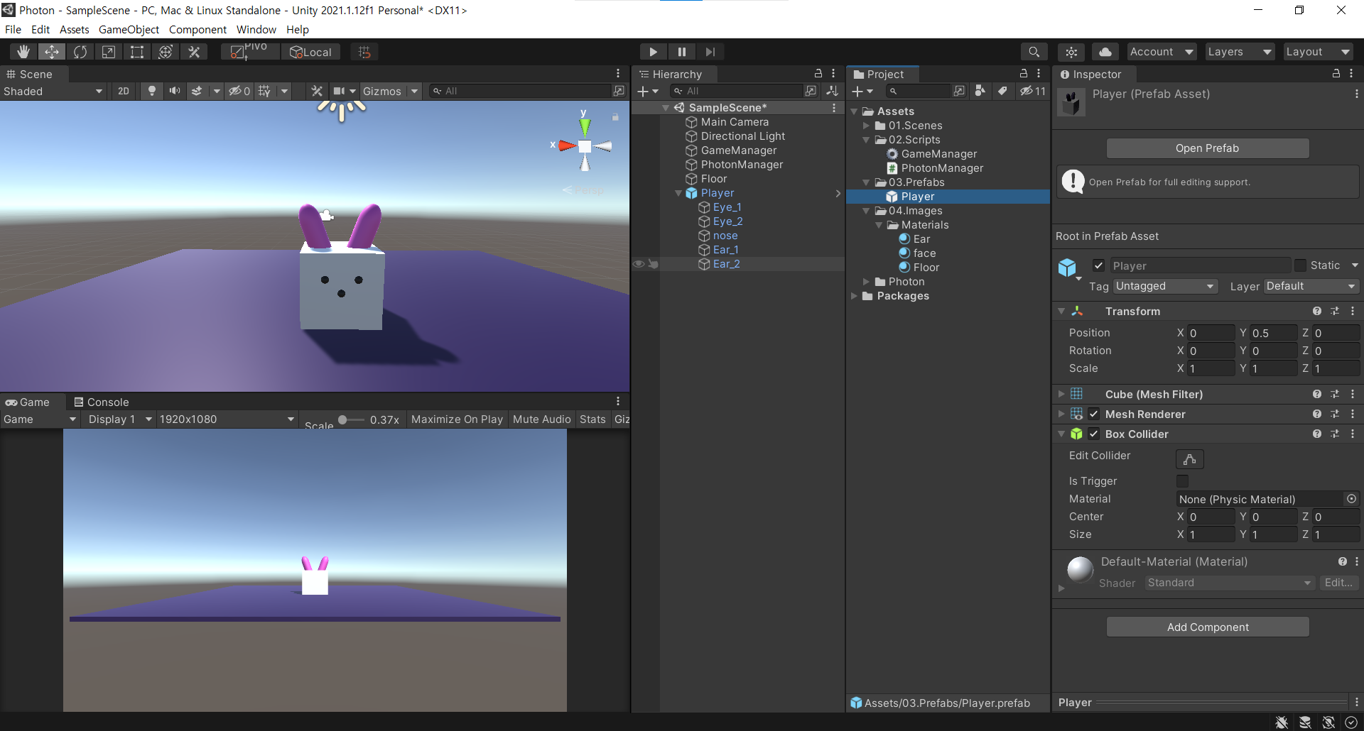 | 04. Photon - ์ค์ต 1 (2) ํ๋ ์ด์ด Material ๋ฐ๊พธ๊ธฐ (0) | 2021.08.17 |