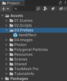 - ๋ง์ ๋๋ effect ๊ณจ๋ผ์ 03.Prefabs ํด๋ ์๋๋ก Prefabํ