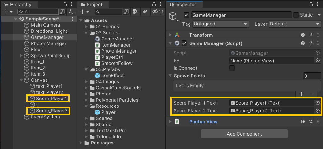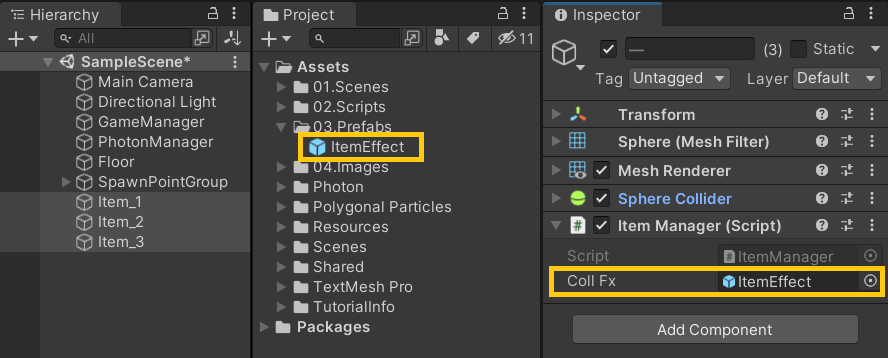 - Item_1, Item_2, Item_3 ๊ฒ์ ์ค๋ธ์ ํธ์ ItemManager ์คํฌ๋ฆฝํธ ์ถ๊ฐ