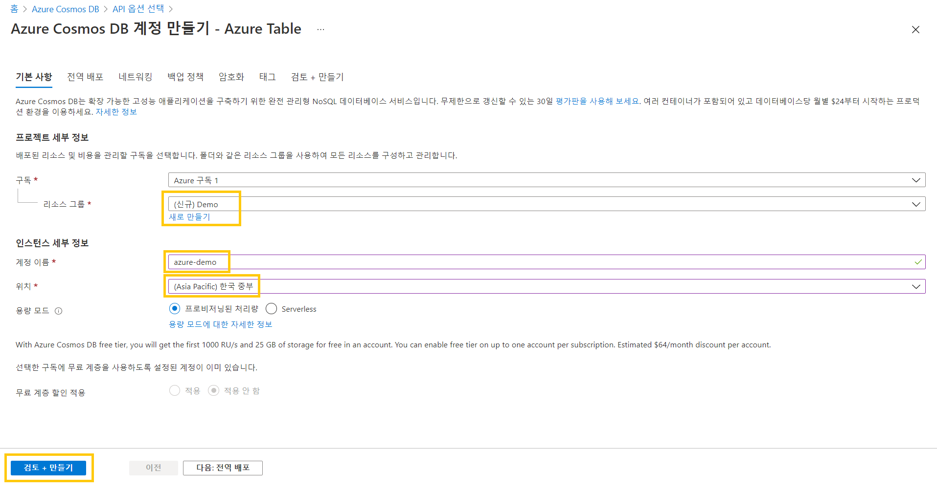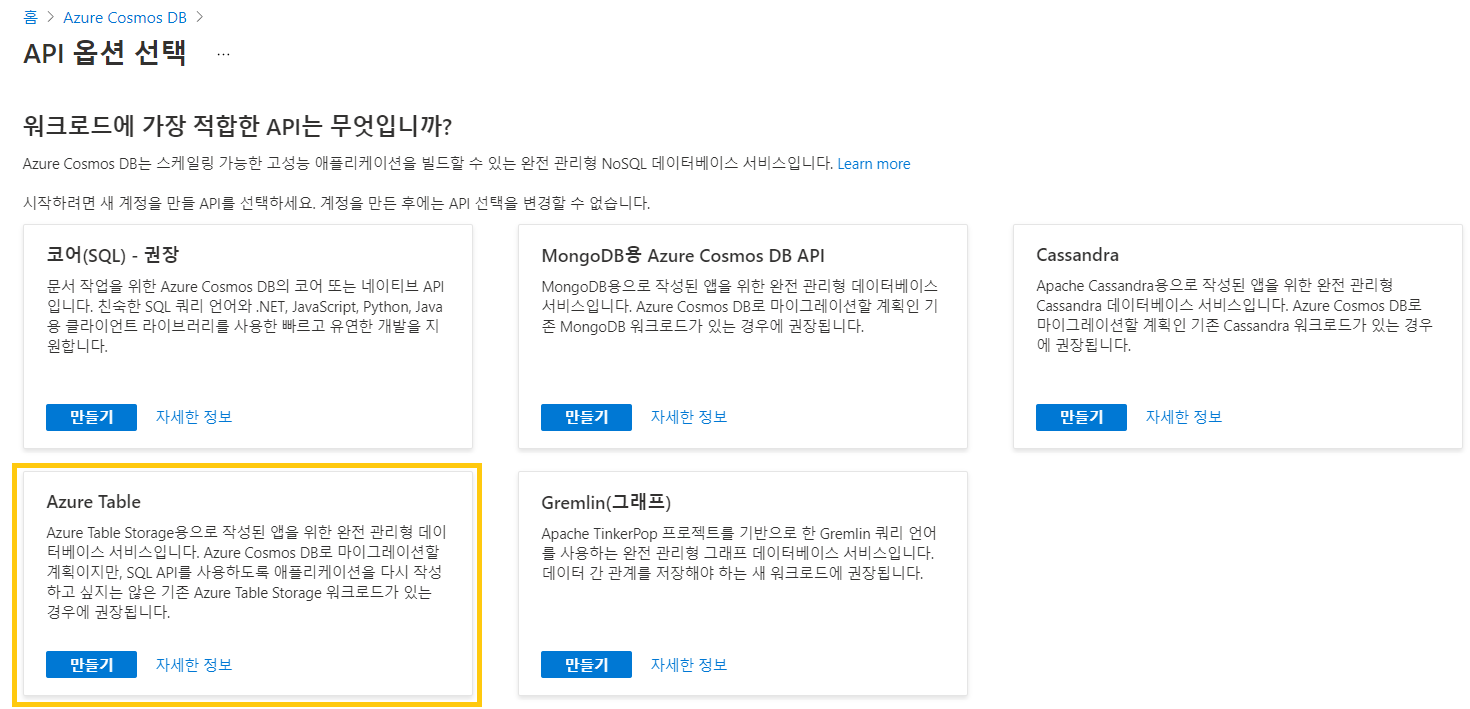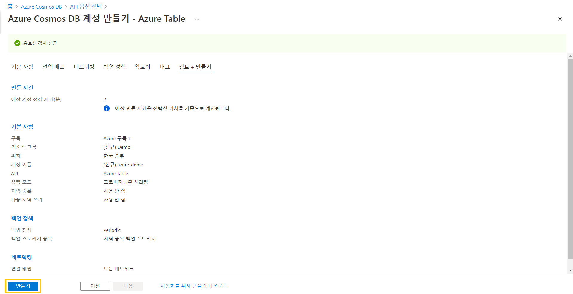 - Table 2๊ฐ๊ฐ ์๊ธด ๊ฒ์ ํ์ธ > Azure Cosmos DB ์ฐ๊ฒฐ๋ ๊ฒ