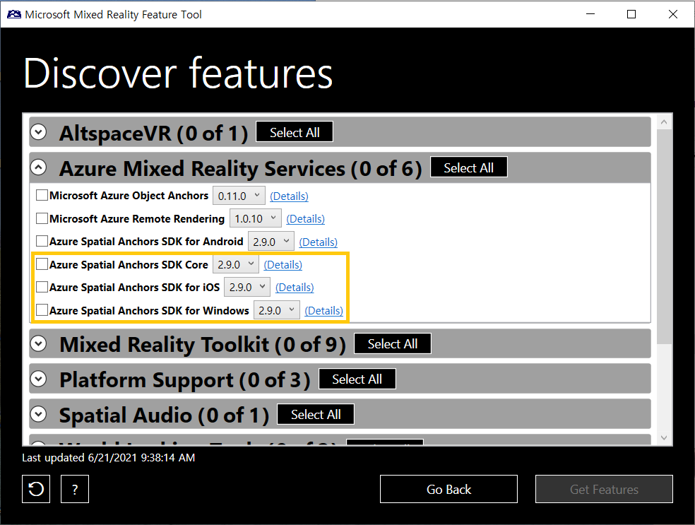 - ์ด์ ๋ฅผ ์ถ์ธกํ๊ฑด๋, Azure Spatial Anchors SDK๊ฐ ์ค์น๊ฐ ์๋์ด์ ๊ทธ๋ฐ ๋ฏํ๋ค.