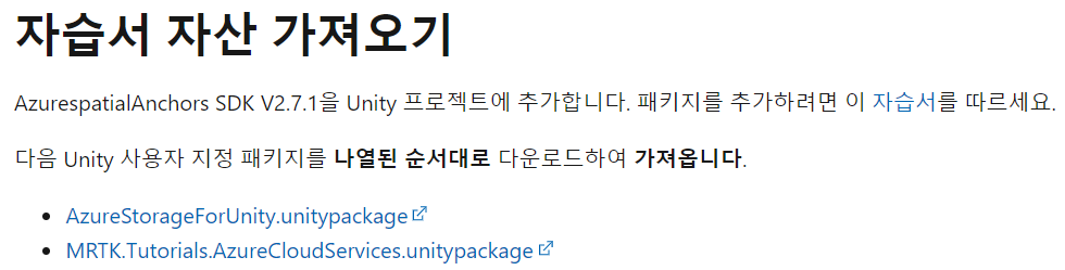 - ํจํค์ง ๋ค์ด ํ ์ํฌํธ : AzureStorageForUnity.unitypackage, MRTK.Tutorials.AzureCloudServices.unitypackage