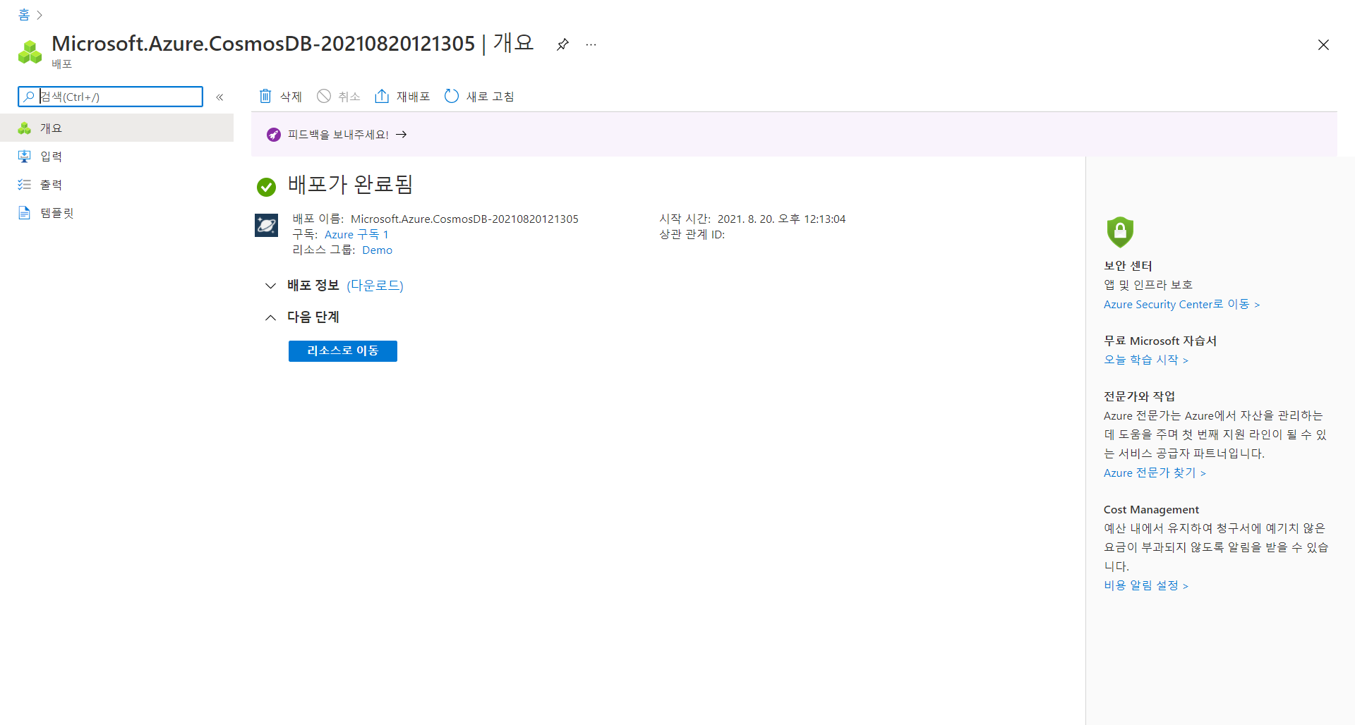 - Table 2๊ฐ๊ฐ ์๊ธด ๊ฒ์ ํ์ธ > Azure Cosmos DB ์ฐ๊ฒฐ๋ ๊ฒ