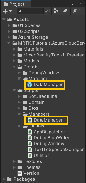 - ํจํค์ง ๋ค์ด ํ ์ํฌํธ : AzureStorageForUnity.unitypackage, MRTK.Tutorials.AzureCloudServices.unitypackage
