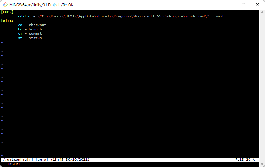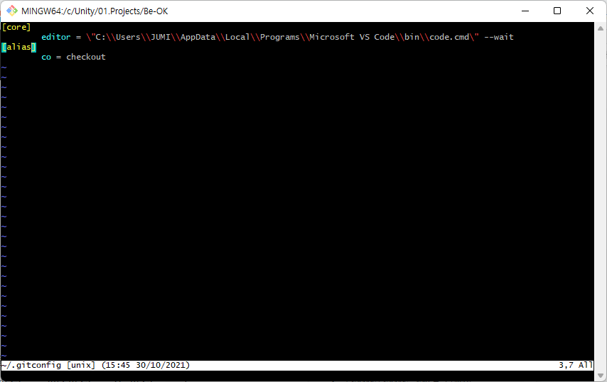 $ vi ~/.gitconfig