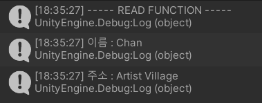 Debug.Log($"----- READ FUNCTION -----");
