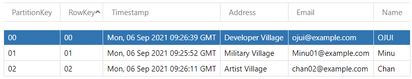 - PartitionKey:01, RowKey:01인 데이터를 삭제