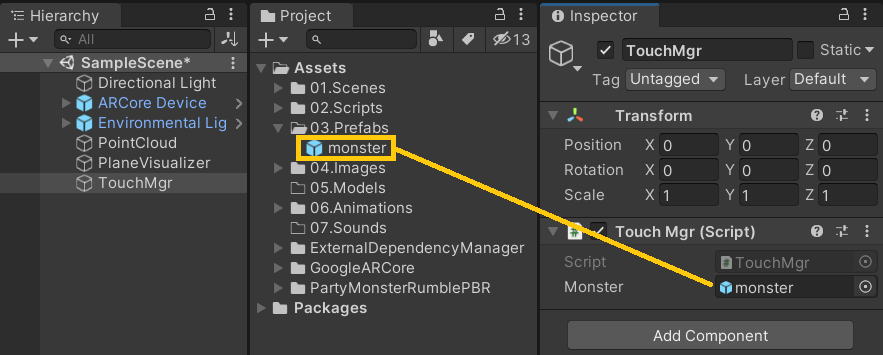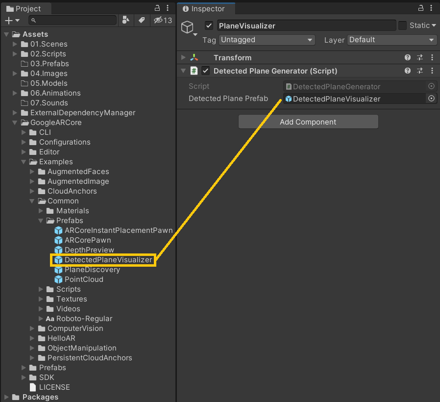 - DetectedPlaneVisualizer ์ฐ๊ฒฐ