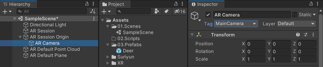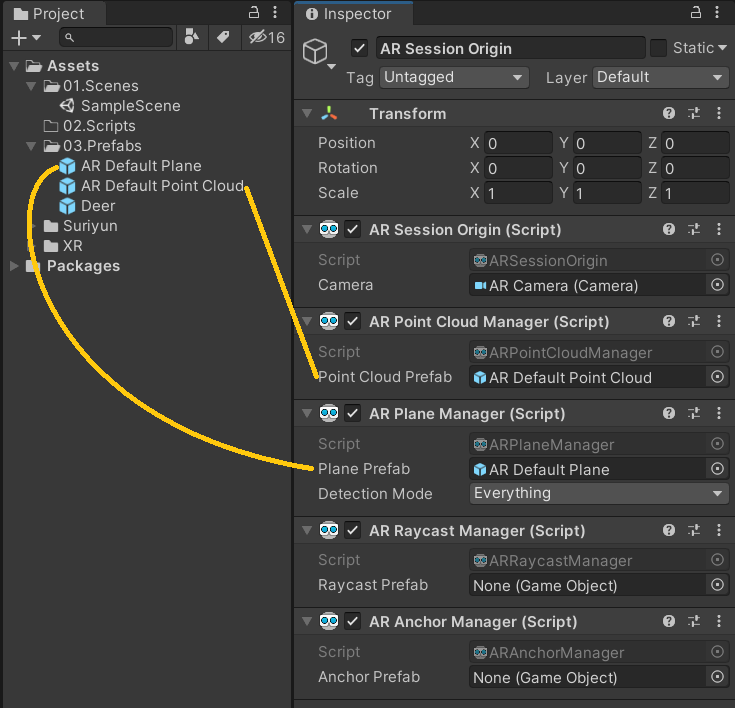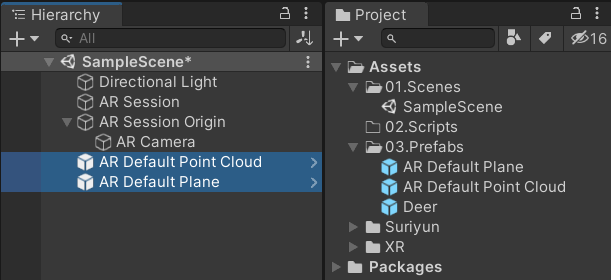 - AR Default Point Cloud, AR Default Plane ํ๋ฆฌํนํ ํ ์ญ์