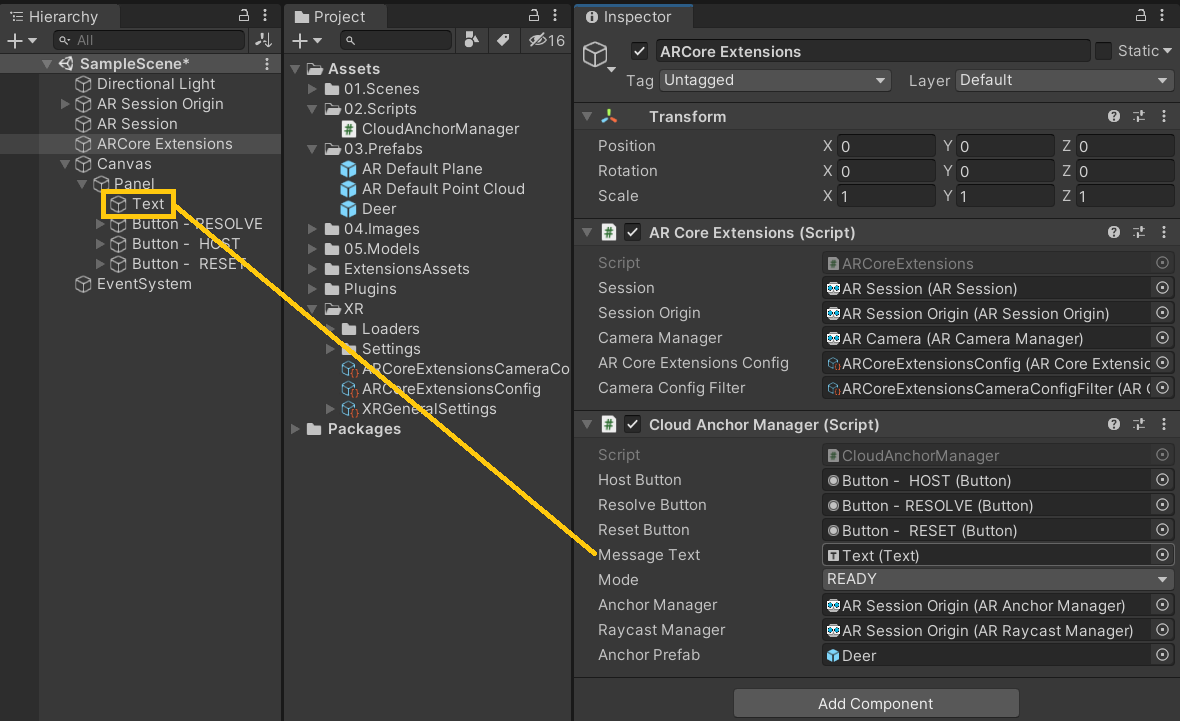 - Text ๋ณํจ : ๋งตํ ํ์ง > Cloud Anchor ์์ฑ ์์