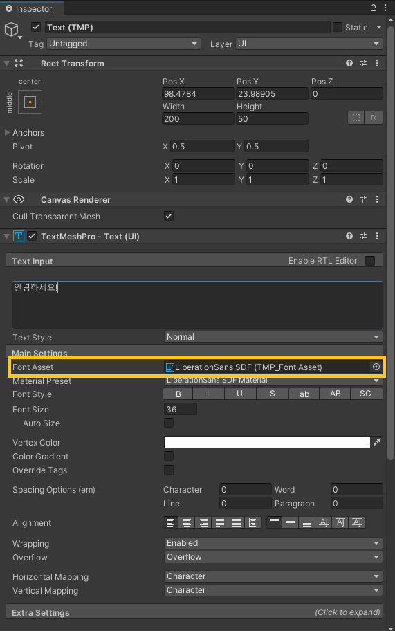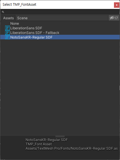 - Font Asset ํด๋ฆญ