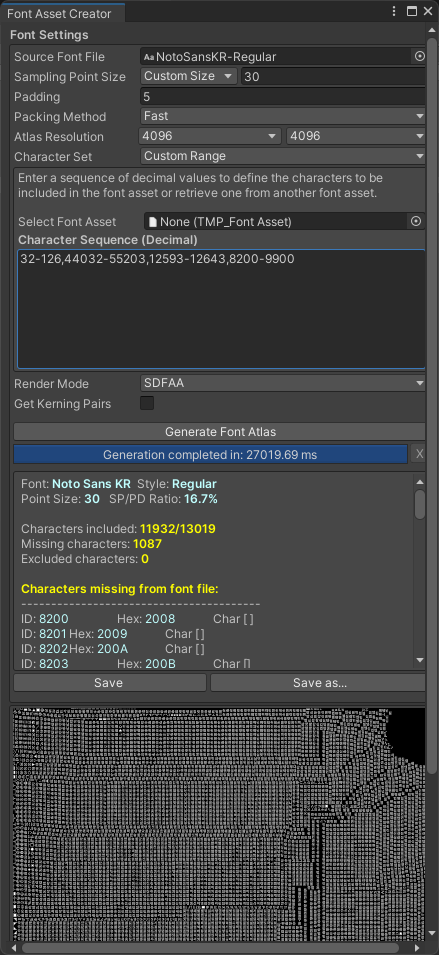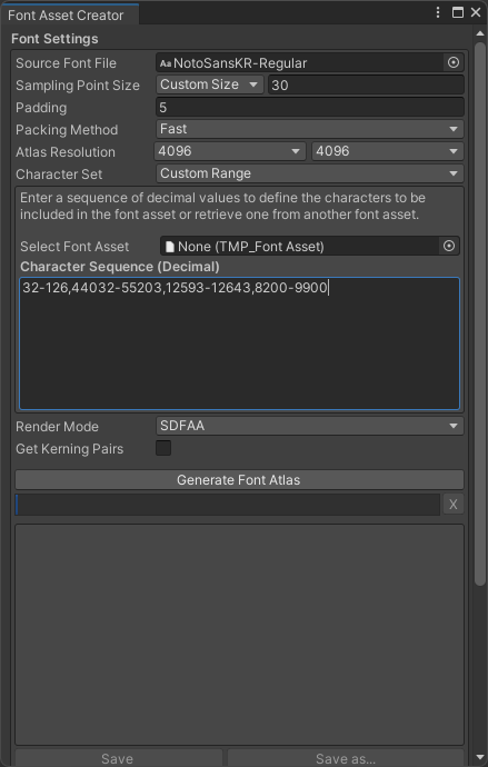 - Generate Font Atlas ํด๋ฆญ