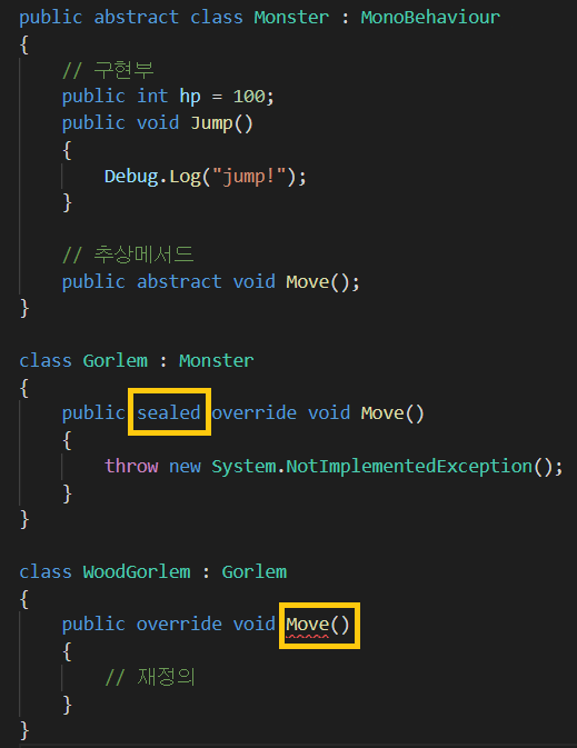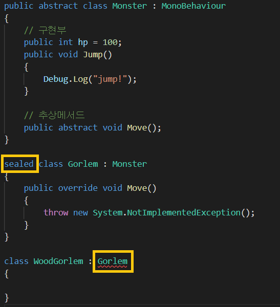 - ๋ชฌ์คํฐ ์ถ์ํด๋์ค๋ฅผ ์์๋ฐ์ ๊ณจ๋ ํด๋์ค๋ฅผ ์ฐ๋๊ณจ๋ ํด๋์ค์์ ์์๋ฐ์