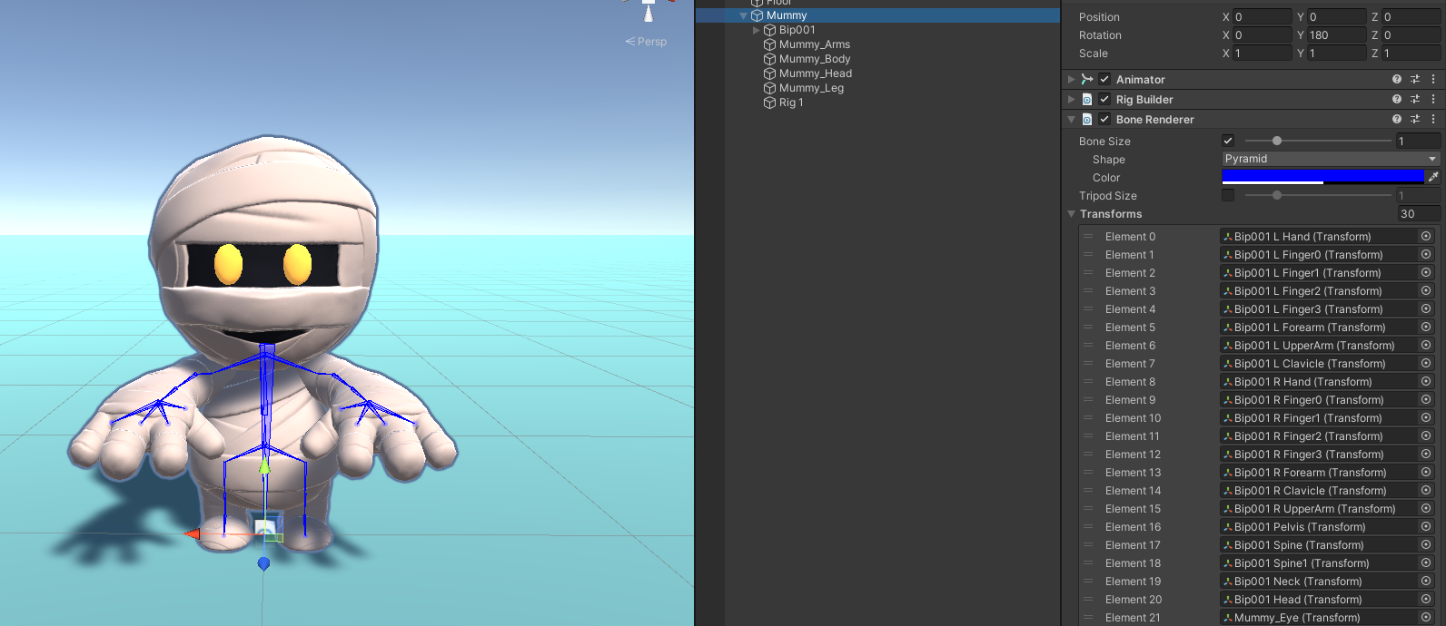 - Bone Renderer ์ปดํฌ๋ํธ๊ฐ ์์ฑ๋จ
