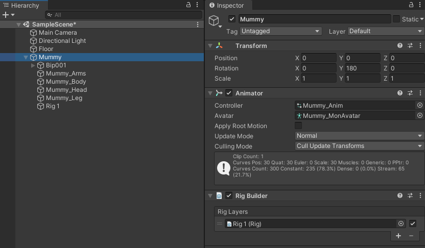 - Rig 1 ๊ฒ์์ค๋ธ์ ํธ๊ฐ ์์ฑ๋์๊ณ , Rig ์ปดํฌ๋ํธ๊ฐ ๋ค์ด์์