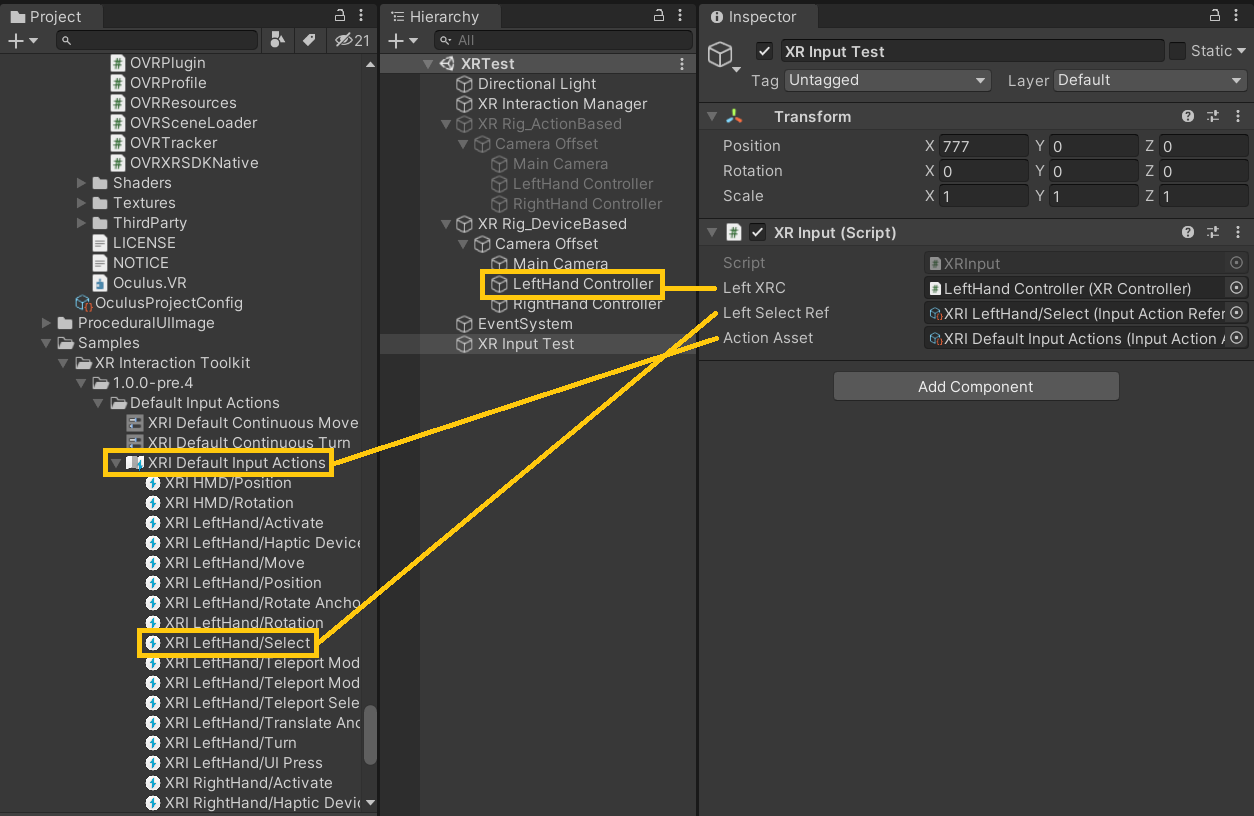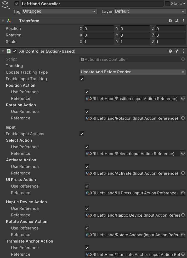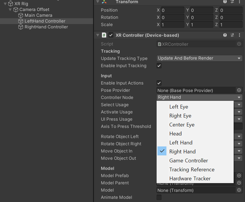 - XR Controller(Device-based) ์ปดํฌ๋ํธ ์ํ๋ ๊ฐ์ผ๋ก ์ค์
