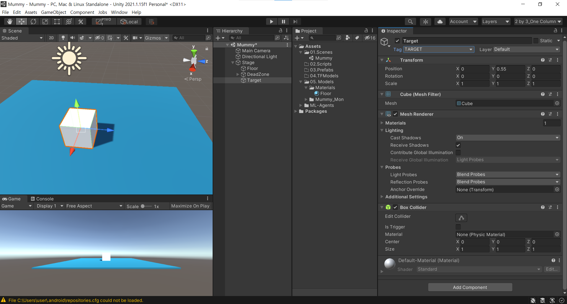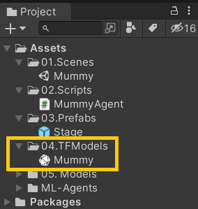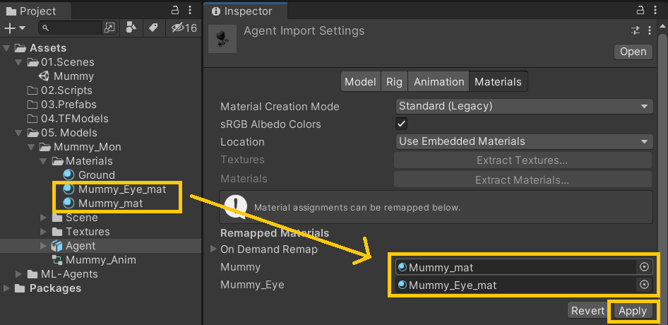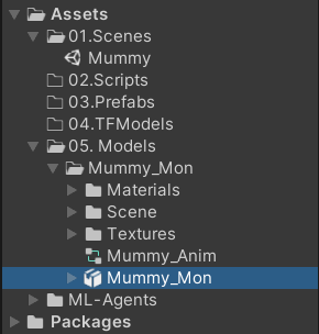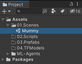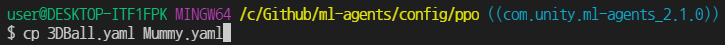 - 3DBall.yamlํ์ผ์ ๋ณต์ฌ > ์ด๋ฆ์ Mummy.yaml๋ก