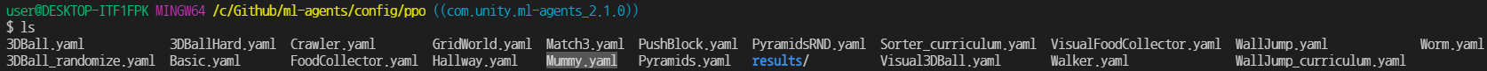 - Mummy.yaml ํ์ผ์ด ์๋ ppoํด๋ ์์์ ์์ ์ฝ๋๋ฅผ ์คํ