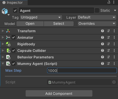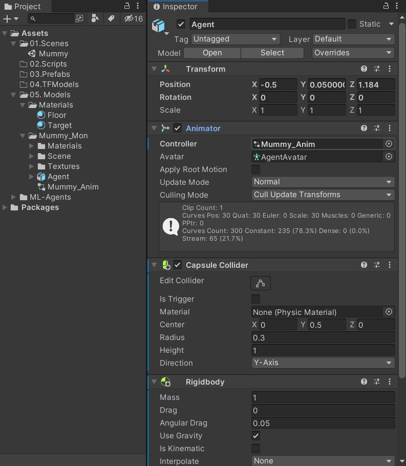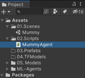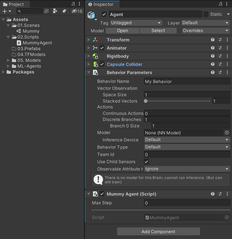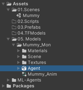 - Agent์ค๋ธ์ ํธ์ MummyAgent.cs ์ฐ๊ฒฐ