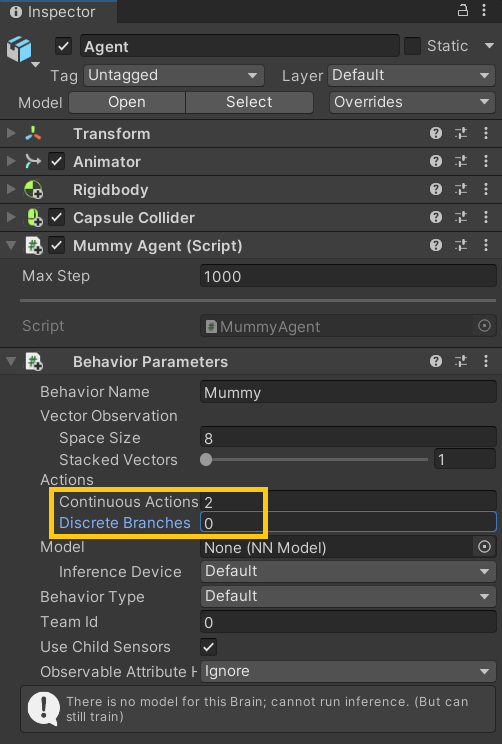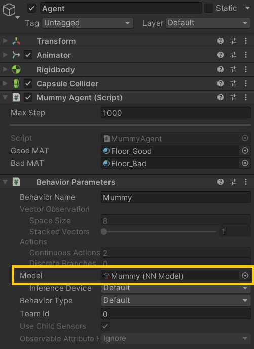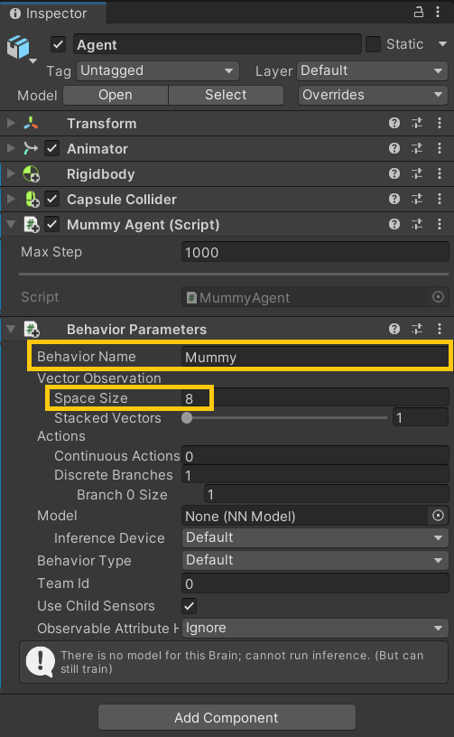 Mummy: #Unity Behavior Parameters ์ปดํฌ๋ํธ์ Behavior ์ด๋ฆ๊ณผ ๋์ผํด์ผํจ